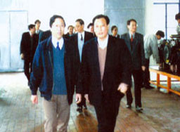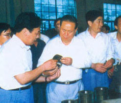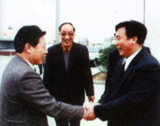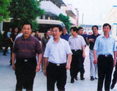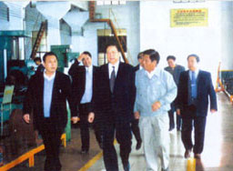 梁省長(前左一)在董事長陪同下視察企業  原副省長俞興德到生產車間視察工作